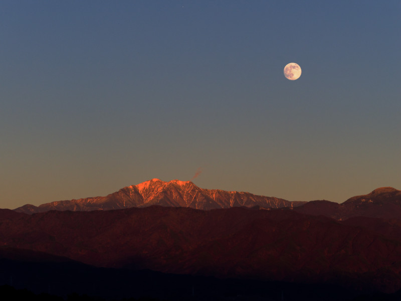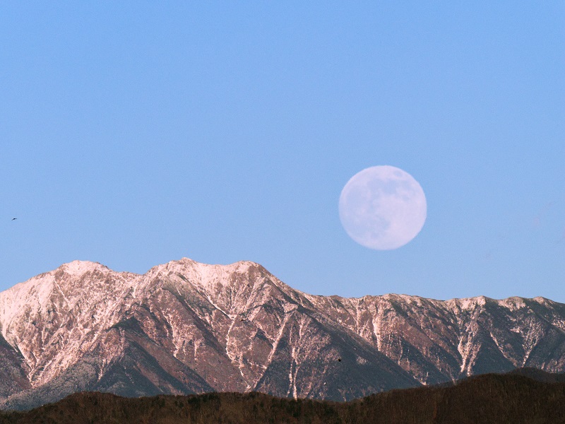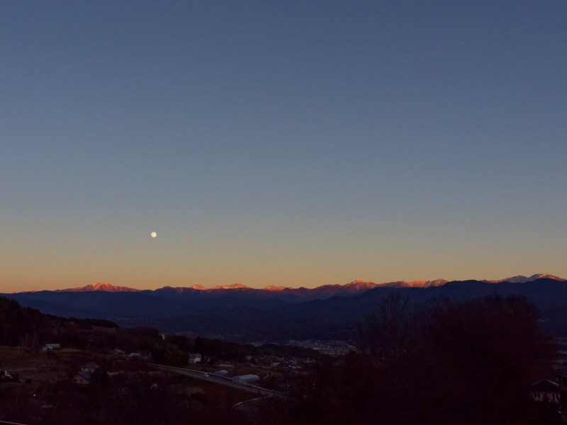 満月の1日前がいい~冬の南アルプスの夕焼けと月の景色が17年住んでも飽きない