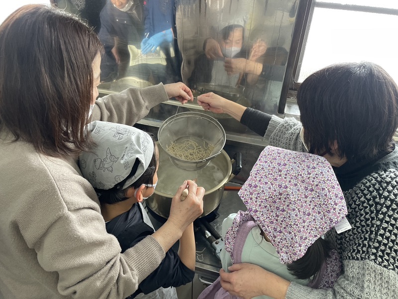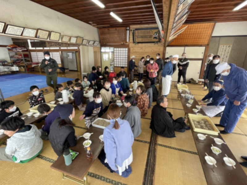 2026年2月8日、牛牧区で毎年恒例となっている『蕎麦打ち体験教室』が開催されました。地区の小学生を対象としたこの教室は、父兄のみなさんも一緒に蕎麦打ちが体験できる人気企画です。