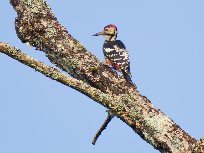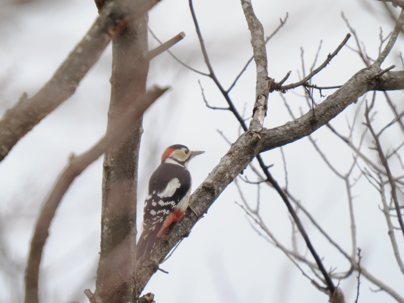 私的に一番撮りづらかったキツツキ。オオアカゲラよりも少し大きいらしいです。この配色の野鳥は珍しいので、見ればすぐ分かるのですが、なかなかじっとしていてくれない印象。